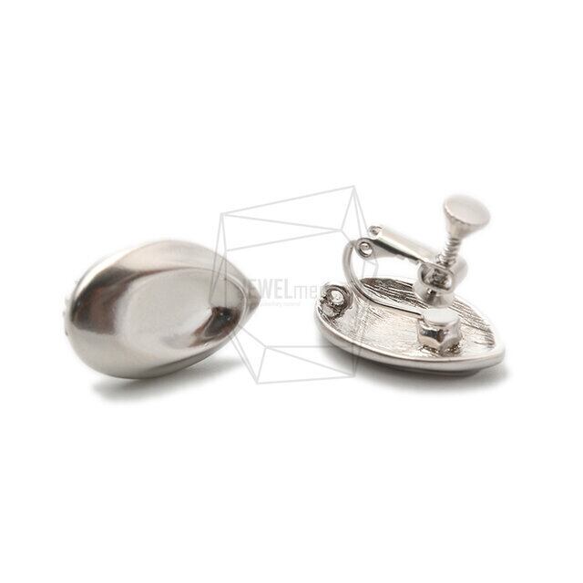 ERG-1328-MR/2PCS/Almond Non Pierced Screw Back Clips Earring/14mm X 21mm/Matte Rhodium Plated Over Brass