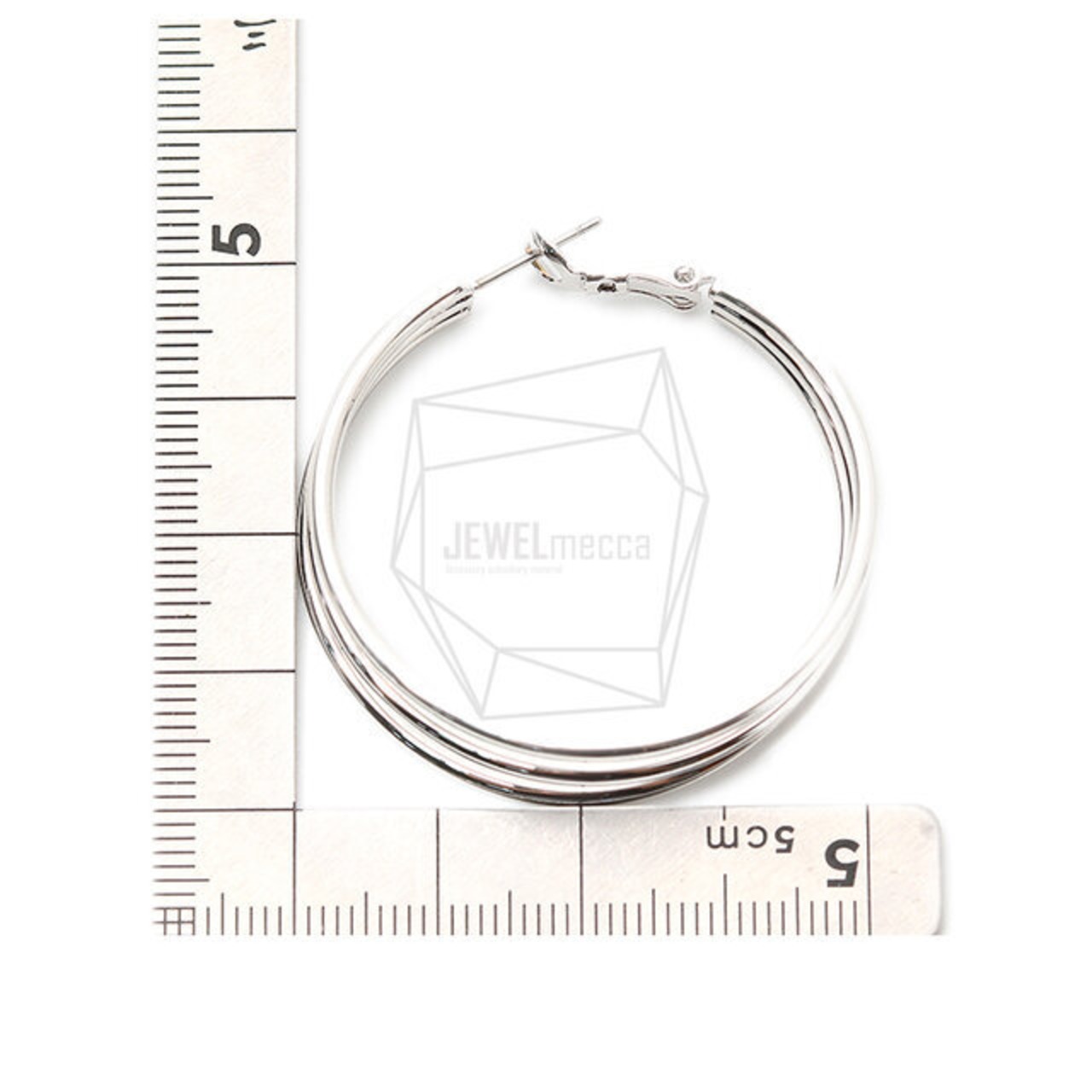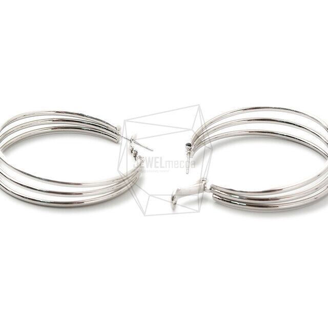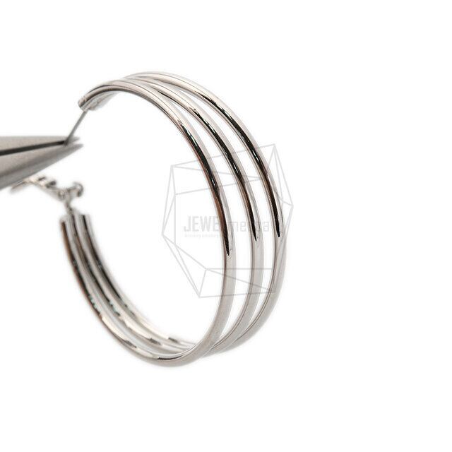 ERG-1327-R/2PCS/Triple round Post Earring/50mm X 50mm/Rhodium Plated Over Brass,Stainless Post