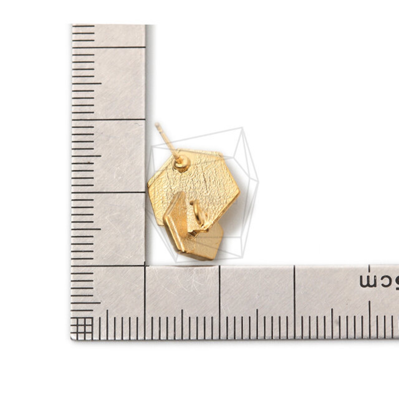 ERG-1330-MG/2PCS/Double Hexagon Earring Post/14mm X 16mm/Matte Gold Plated Over Tin,silver post