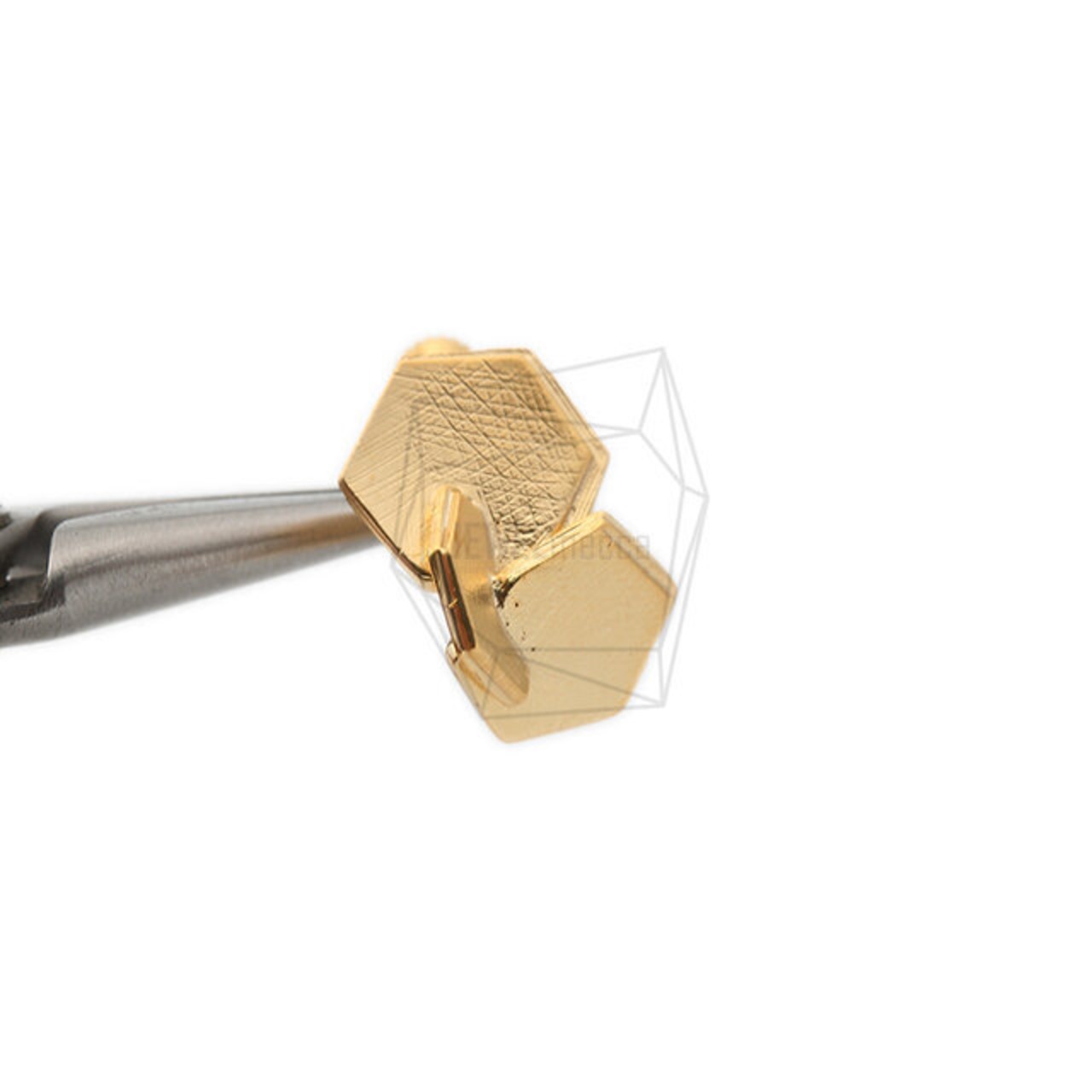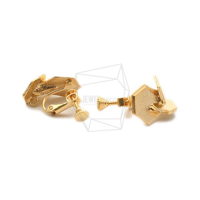 ERG-1331-MG/2PCS/Triple Hexagon Non Pierced Screw Back Clips Earring/14mm X 22mm/Matte Gold Plated Over Tin