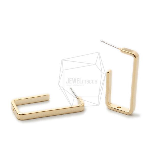 ERG-1332-G/2PCS/Square Post Earring/13mm X 31mm/Gold Plated Over Brass,Stainless Post