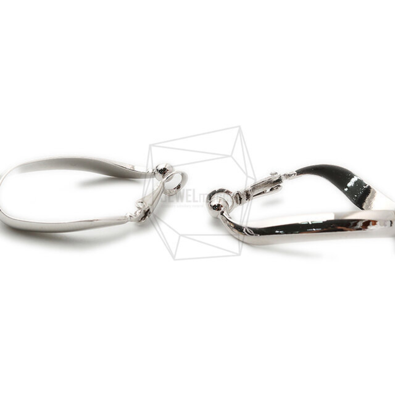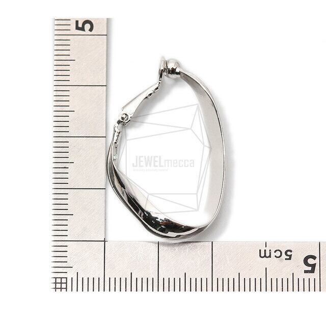 ERG-1338-R/2PCS/Twisted round earrings/21mm X 36mm/Rhodium Plated Over Brass