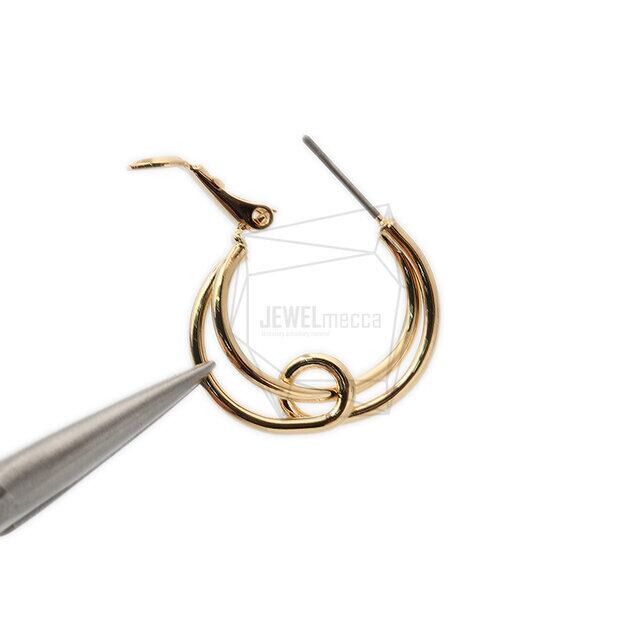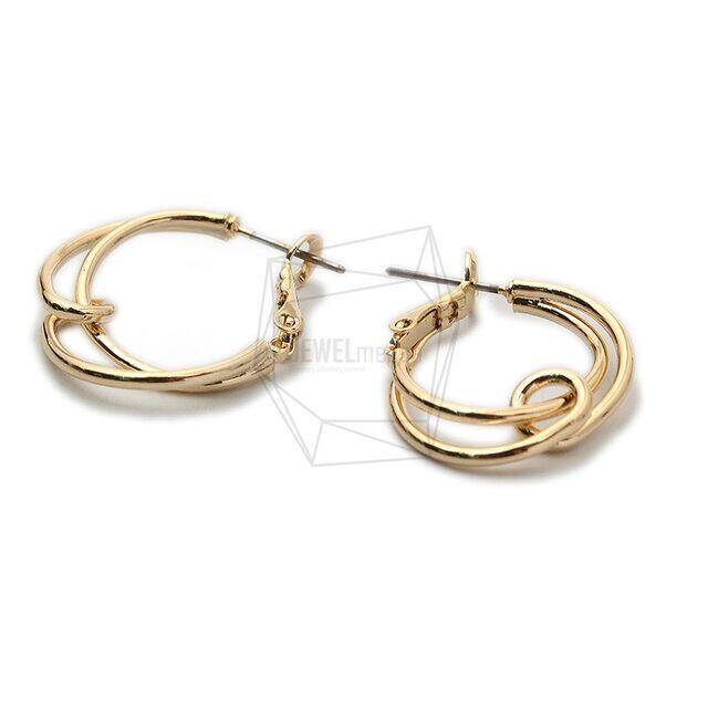 ERG-1340-G/2PCS/Knot round Post Earring/22mm X 24mm/Gold Plated Over Brass,Stainless Post