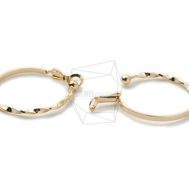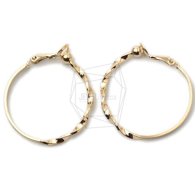 ERG-1341-G/2PCS/Twisted round earrings/30mm X 33mm/Gold Plated Over Brass