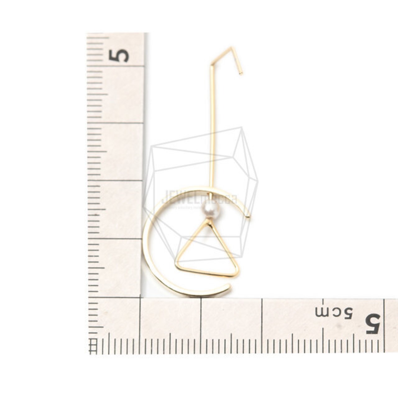 ERG-1349-G/2PCS/Round&Triangl Ear Hook Earrings/18mm X 45mm/Gold Plated Over Brass