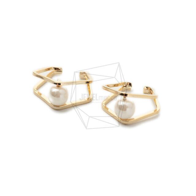 ERG-1352-G/2PCS/Round Earcuffs Earrings/18mm X 18mm/Gold Plated Over Brass,Imitation pearl