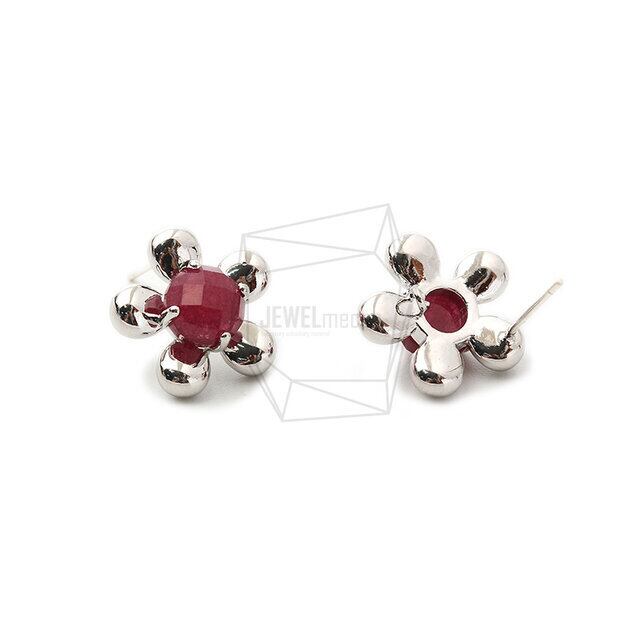 ERG-1358-R/2Pcs-Natural stone Ear Post/ 13mm x 15mm /Rhodium Plated Over Brass/925 sterling silver post