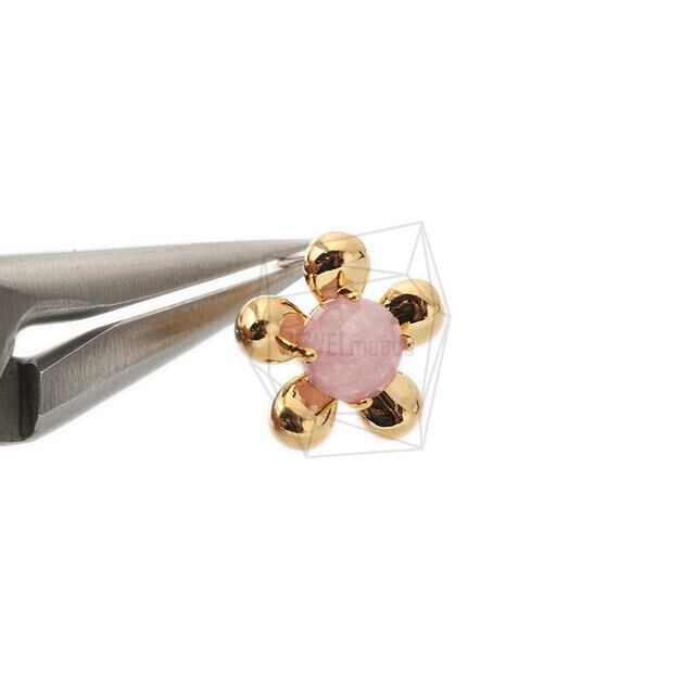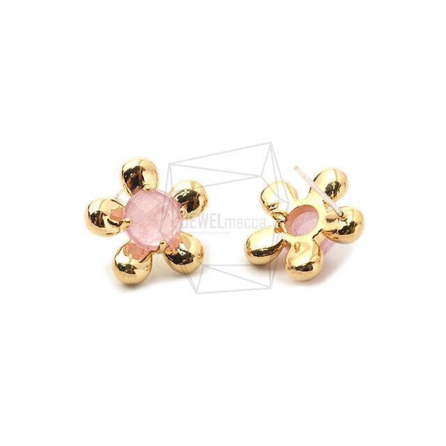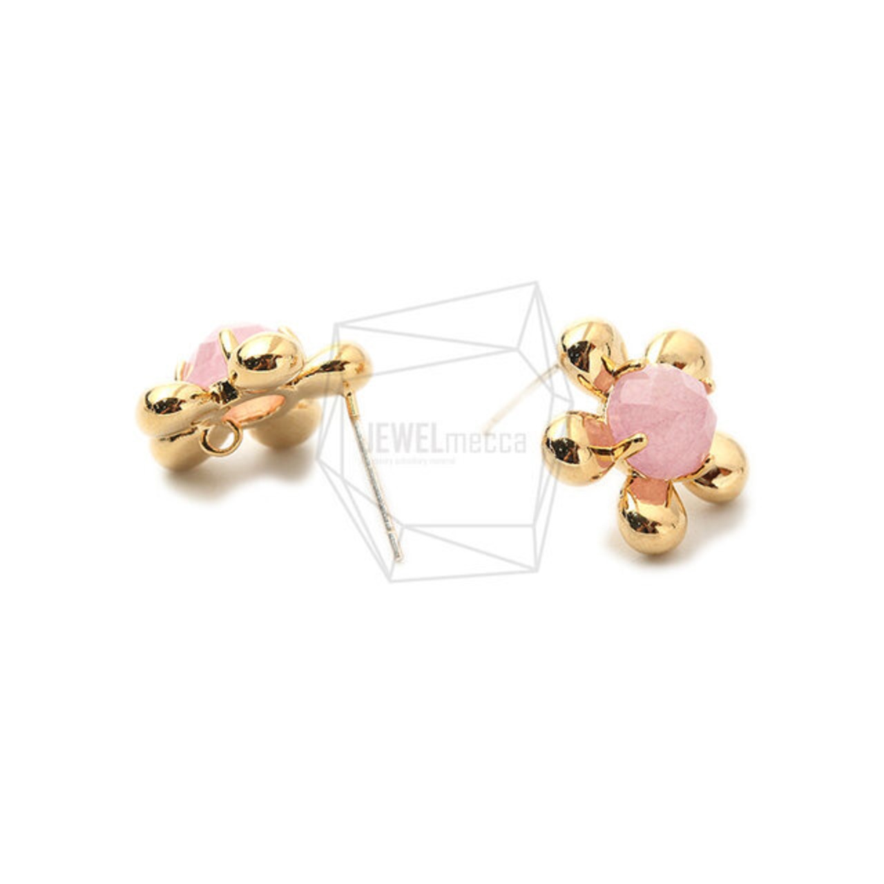 ERG-1359-G/2Pcs-Natural stone Ear Post/ 13mm x 15mm /Gold Plated Over Brass/925 sterling silver post