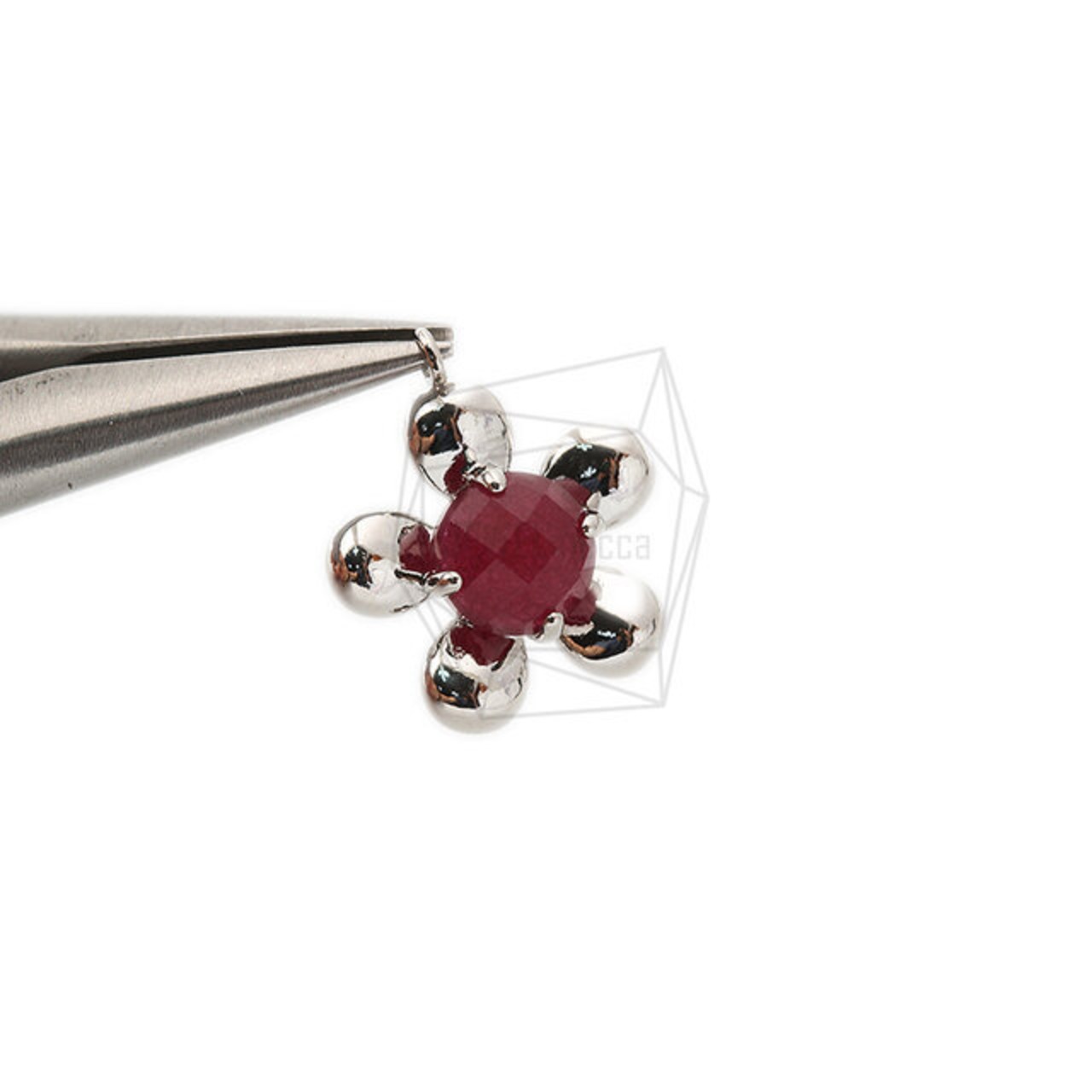 PDT-2324-R/2Pcs-Natural stone Pendant/ 15mm x 17mm /Rhodium Plated Over Brass