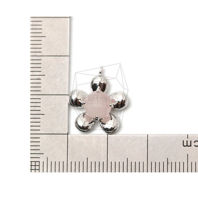 PDT-2327-R/2Pcs-Natural stone Pendant/ 15mm x 17mm /Rhodium Plated Over Brass