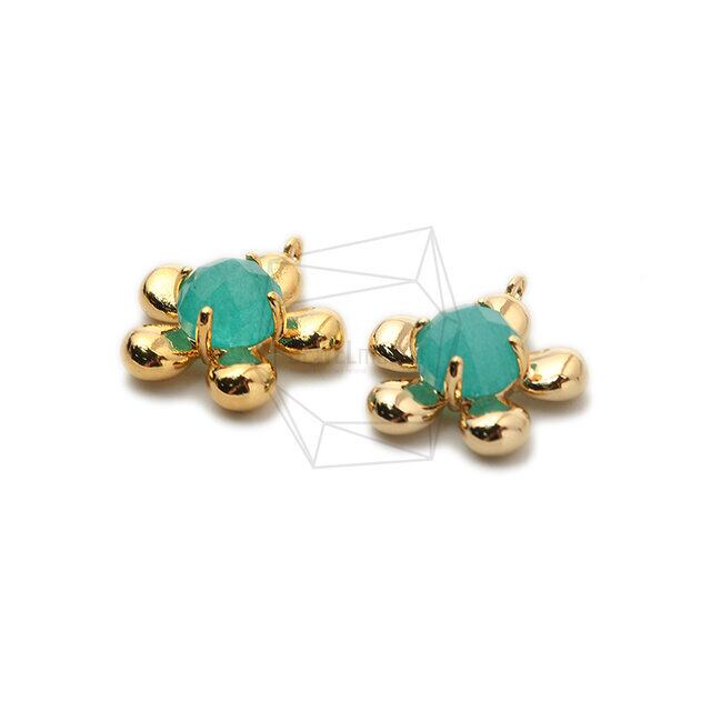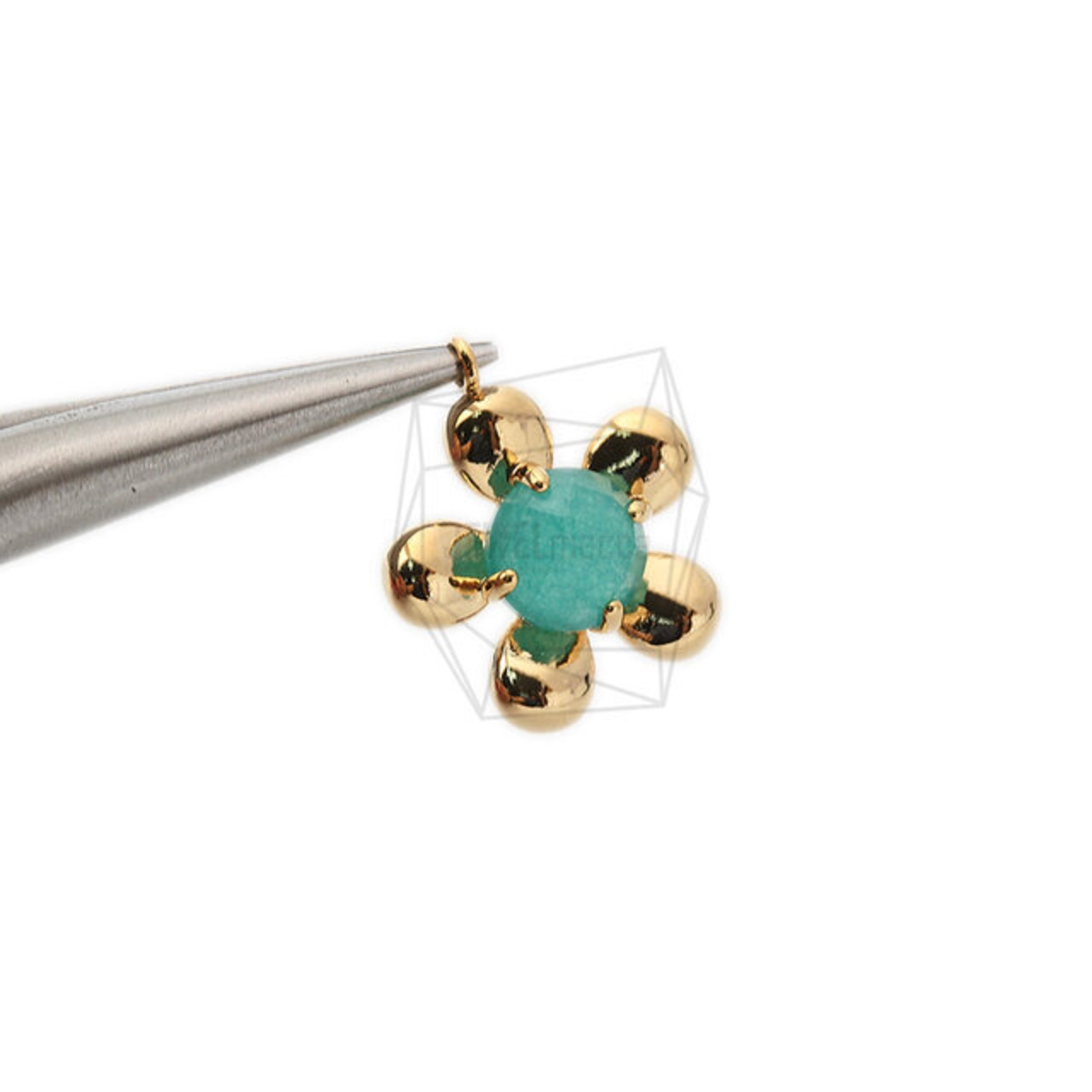 PDT-2328-G/2Pcs-Natural stone Pendant/ 15mm x 17mm /Gold Plated Over Brass
