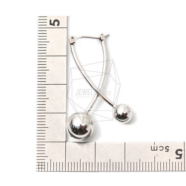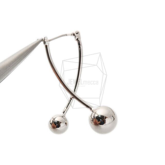 ERG-1357-R/2PCS/Double Ball Earring Post /24mm x 35mm/Rhodium Plated over Brass,Titanium post