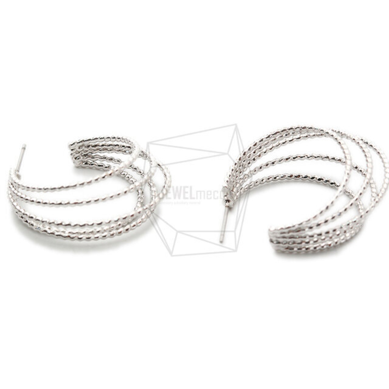 ERG-1365-R/2PCS/5 rounds Post Earrin/40mm X 40mm/Rhodium Plated Over Brass,Stainless Post