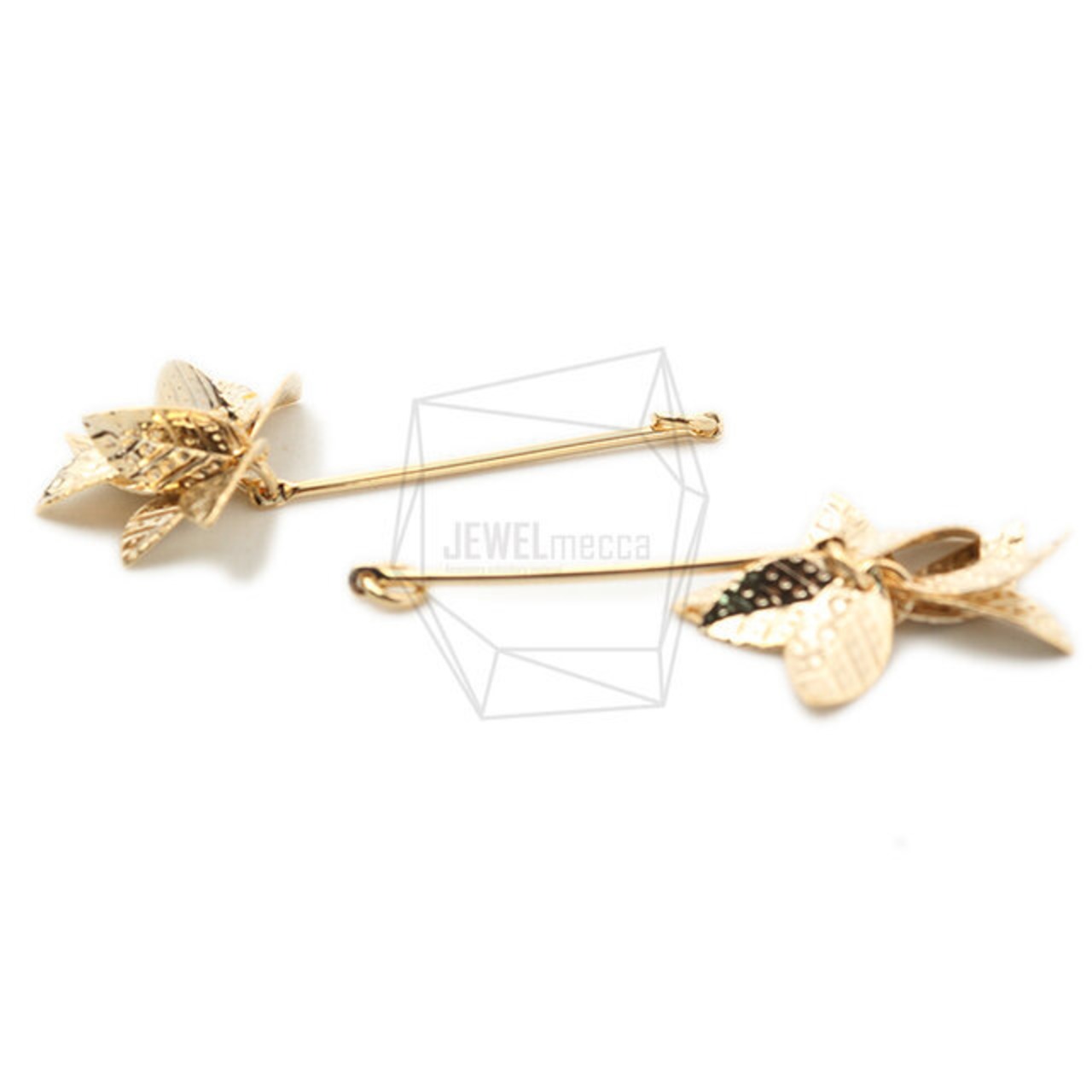 ERG-1371-G/2PCS/Multi-petal earrings charm/20mm X 45mm/Gold Plated Over Brass