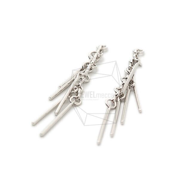 ERG-1373-R/2PCS/Multi Bar Tassel Earring Charm/12mm X 55mm/Rhodium Plated over Brass