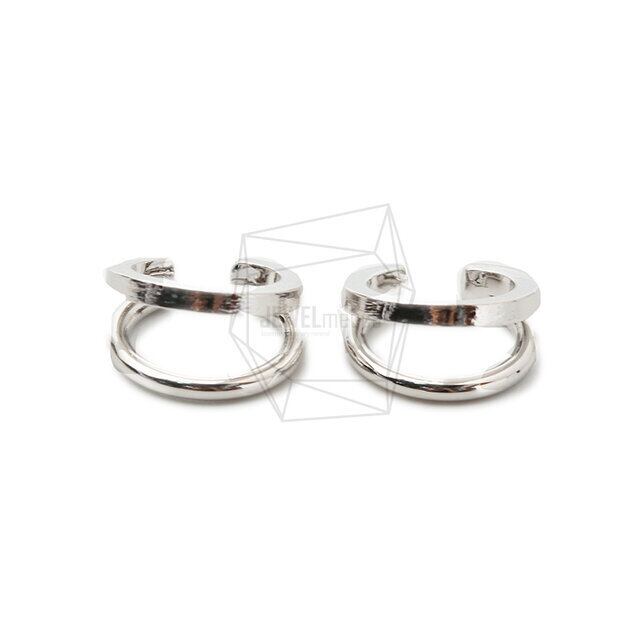ERG-1378-R/2PCS/Brushed Round Earcuffs Earrings/15mm X 15mm/Rhodium Plated Over Brass
