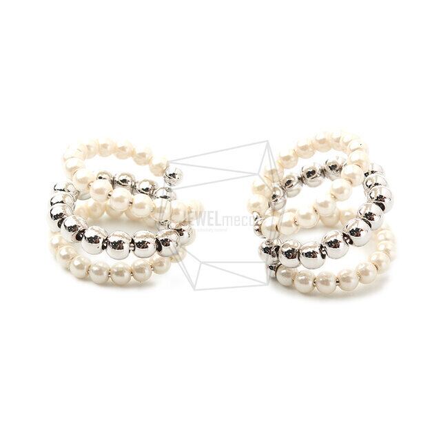 ERG-1379-R/2PCS/Round Earcuffs Earrings/21mm X 21mm/Rhodium Plated Over Brass,Imitation pearl