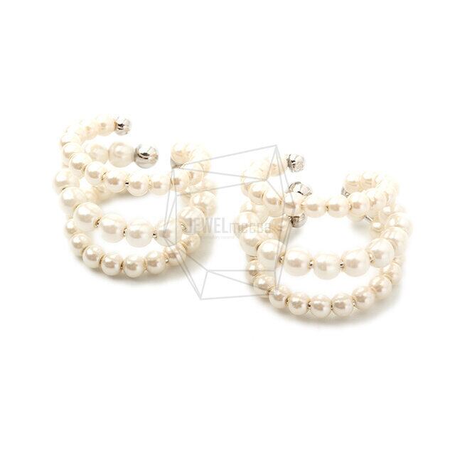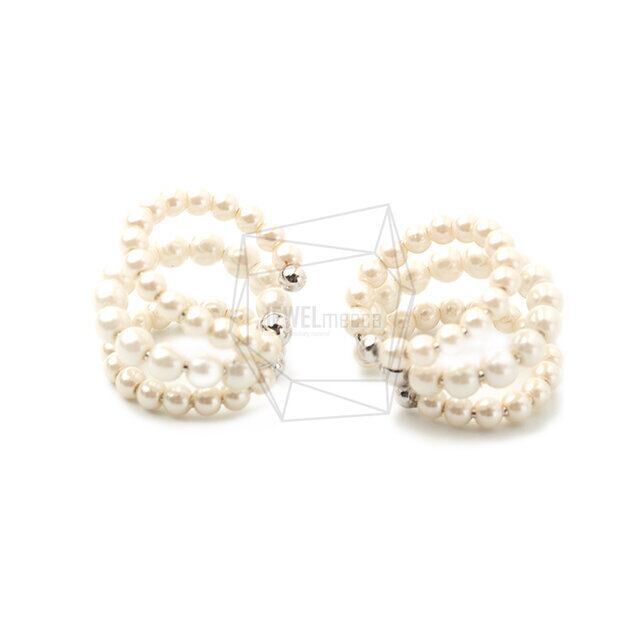 ERG-1381-R/2PCS/Round Earcuffs Earrings/22mm X 22mm/Rhodium Plated Over Brass,Imitation pearl