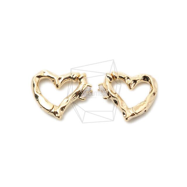 ERG-1382-G/2PCS/Heart Earcuffs Earrings/17mm X 20mm/Gold Plated Over Brass,CZ