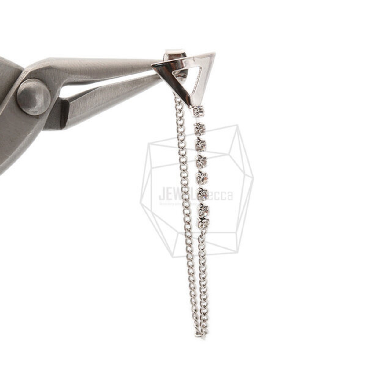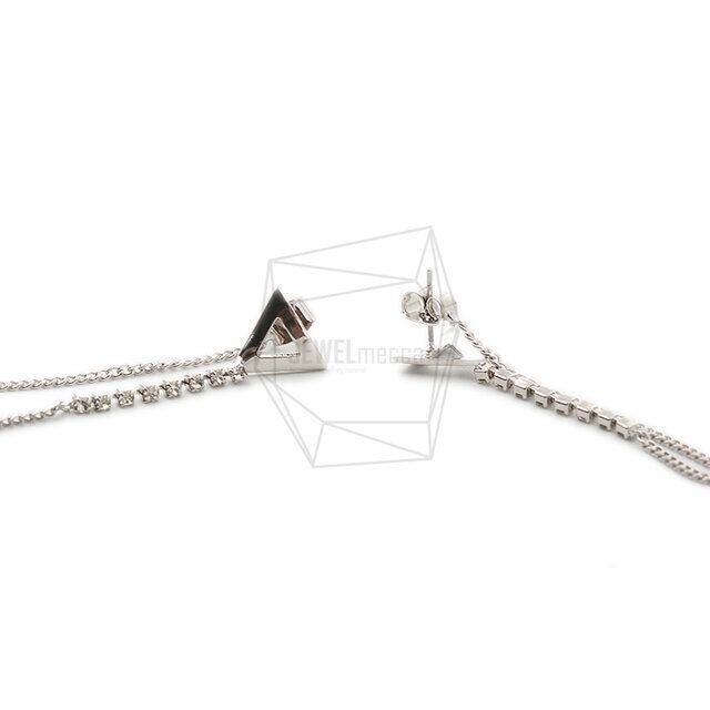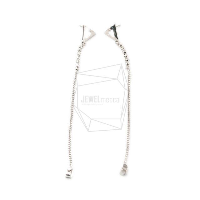 ERG-1386-R/2PCS/Triangle Earring with Chain Drop Post/12mm x 108mm/Rhodium Plated over Brass,Nickel free post
