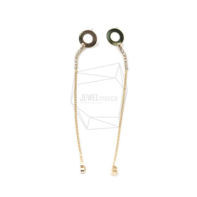 ERG-1389-G/2PCS/Round Earring with Chain Drop Post/12mm x 108mm/Gold Plated over Brass,Nickel free post