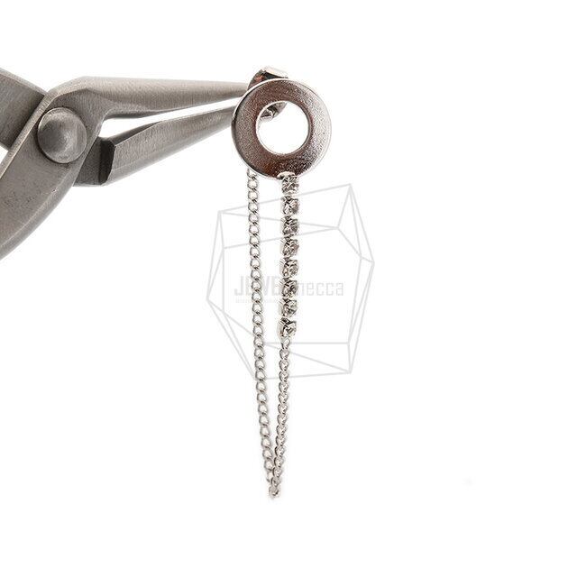 ERG-1389-R/2PCS/Round Earring with Chain Drop Post/12mm x 108mm/Rhodium Plated over Brass,Nickel free post