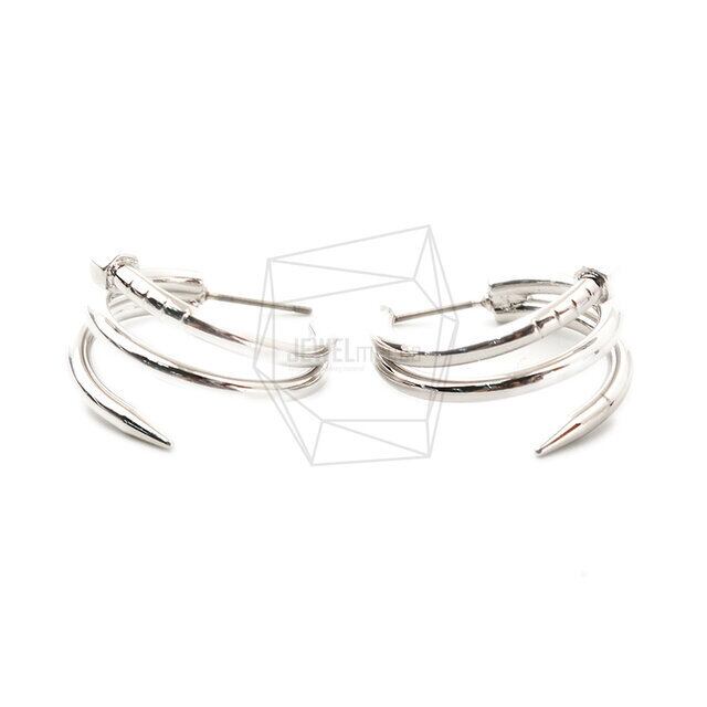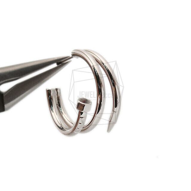ERG-1388-R/2PCS/Nail shape post earring/26mm x 26mm/Rhodium Plated Over Brass ,Titanium post