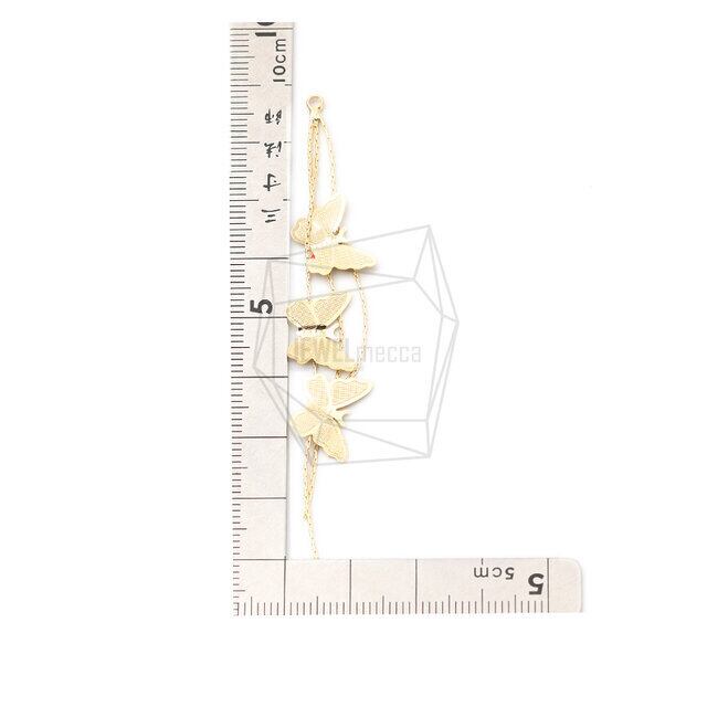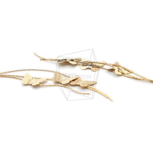 ERG-1390-G/2PCS/Butterfly Tassel Earring Charm/12mm X 78mm/Gold Plated Over Brass