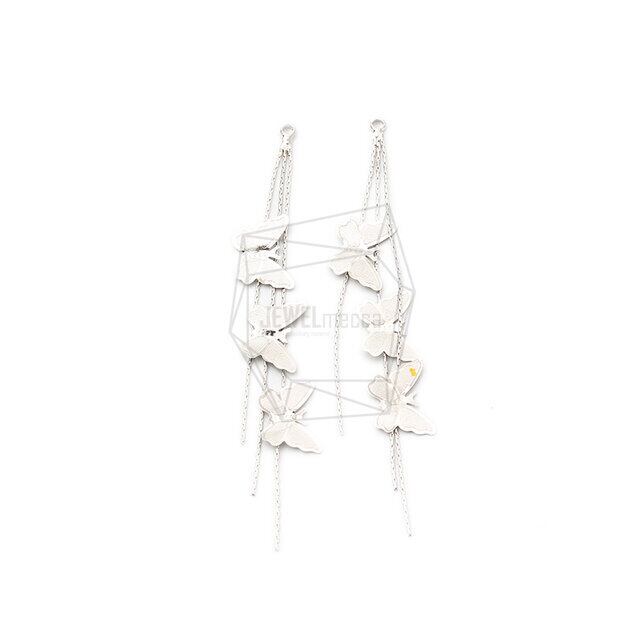 ERG-1390-R/2PCS/Butterfly Tassel Earring Charm/12mm X 78mm/Rhodium Plated Over Brass