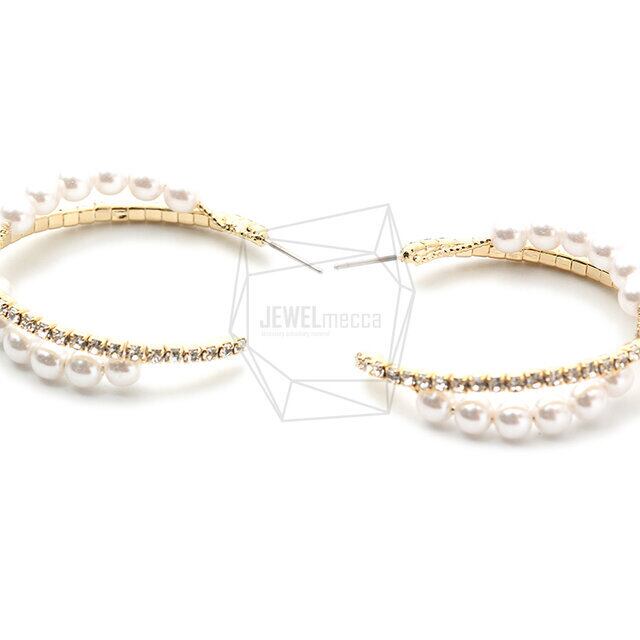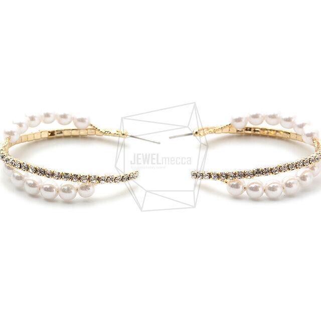 ERG-1392-G/2PCS/Pearl C shape Post Earring /36mm X 36mm/Gold Plated Over Brass,Imitation pearl,Cubic,Titanium post