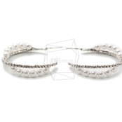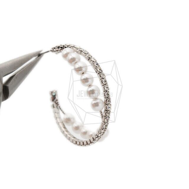 ERG-1392-R/2PCS/Pearl C shape Post Earring /36mm X 36mm/Rhodium Plated Over Brass,Imitation pearl,Cubic,Titanium post