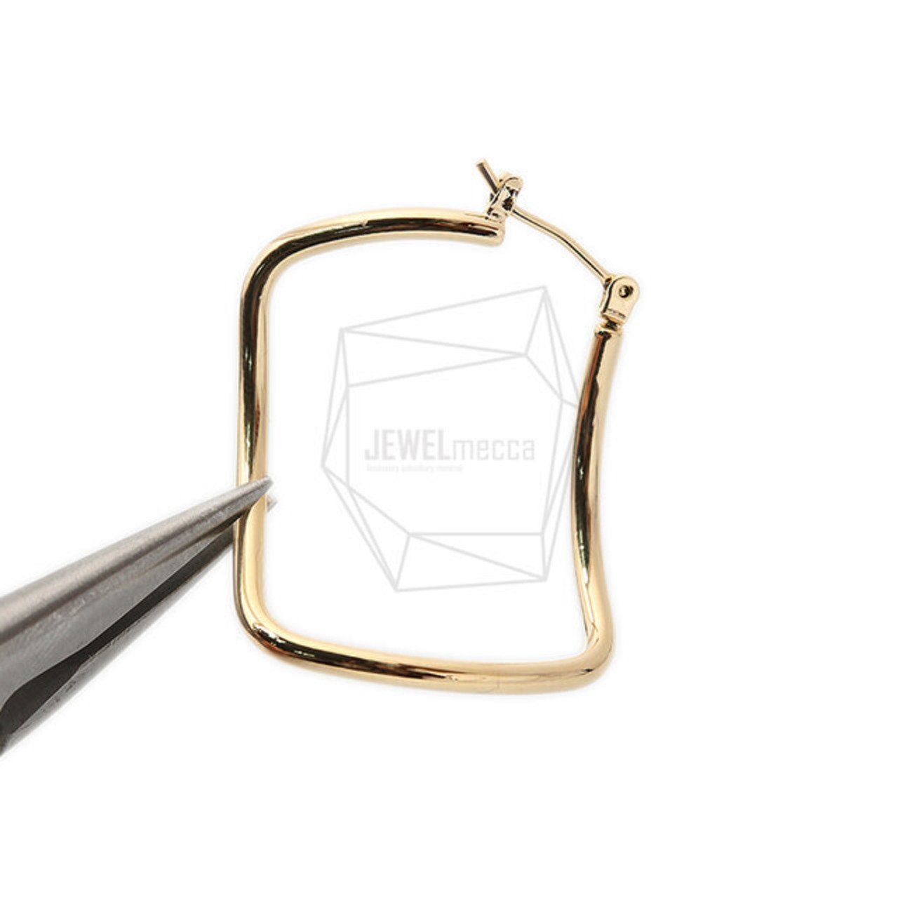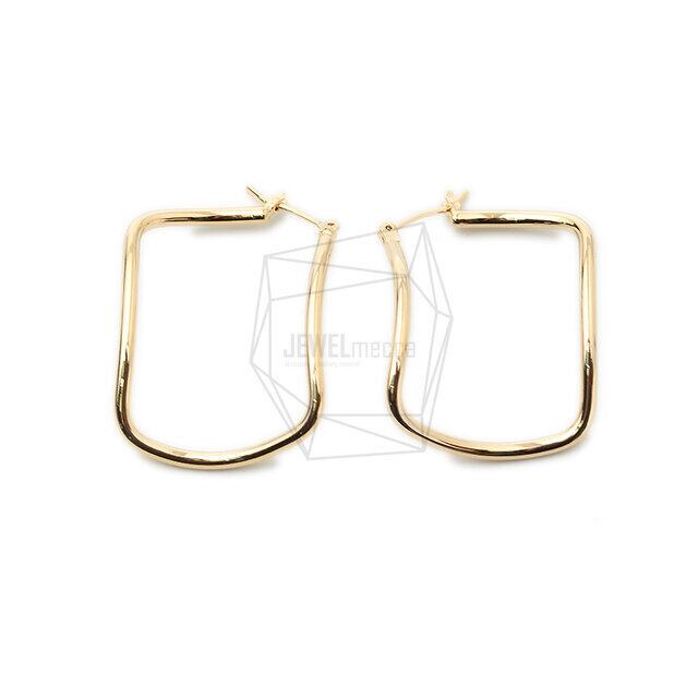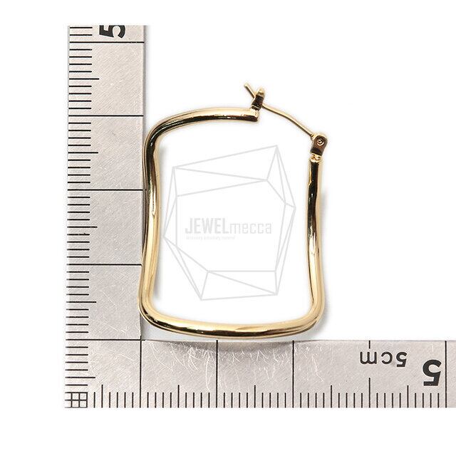 ERG-1393-G/2PCS/Wave Square Post Earring/24mm X 30mm/Gold Plated Over Brass