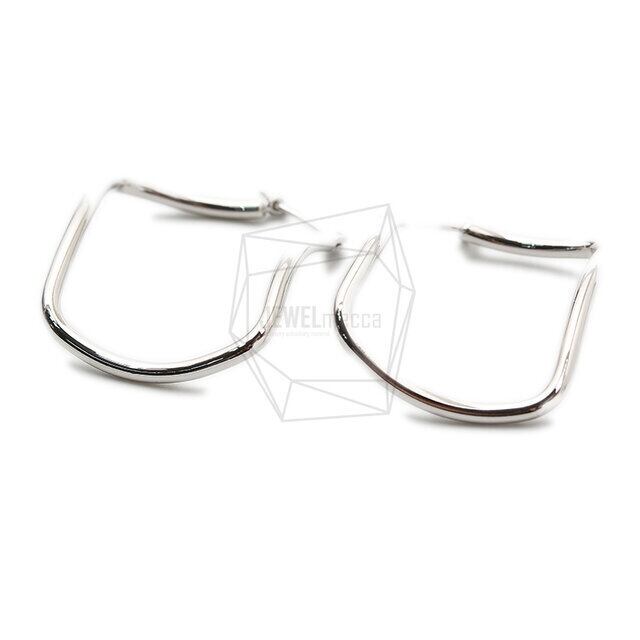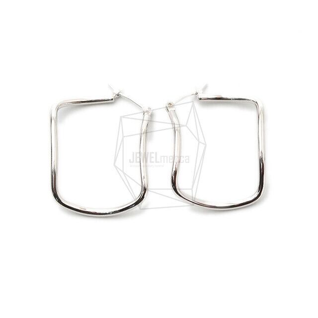 ERG-1393-R/2PCS/Wave Square Post Earring/24mm X 30mm/Rhodium Plated Over Brass