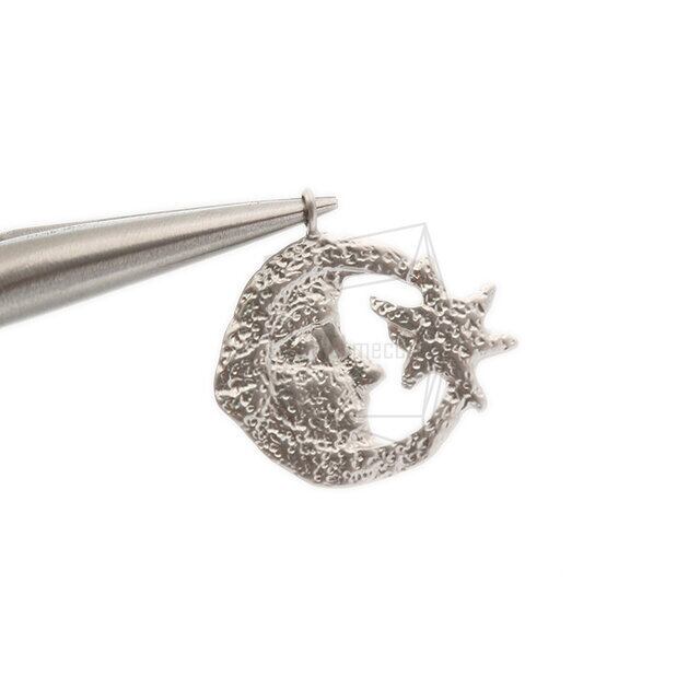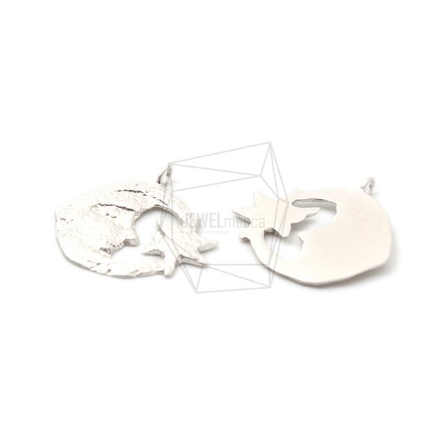 PDT-2332-MR/2PCS/Face shape Pendant/20mm X 20mm/Rhodium Gold Plated Over Brass