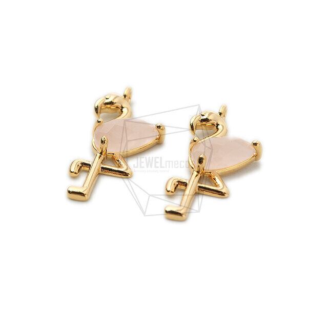 PDT-2335-G/2Pcs- stone flamingo Pendant/ 10mm x 20mm /Gold Plated over brass,stone