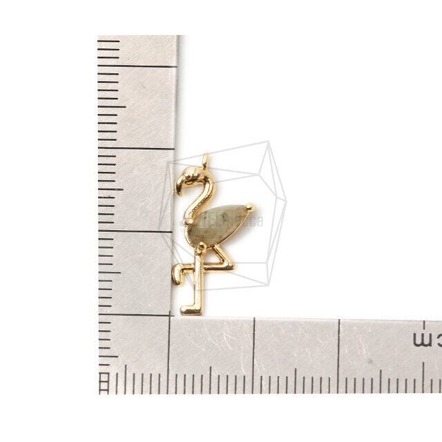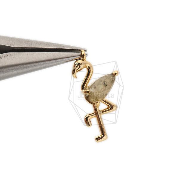 PDT-2337-G/2Pcs- stone flamingo Pendant/ 10mm x 20mm /Gold Plated over brass,stone