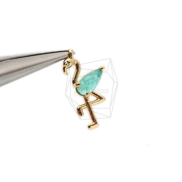 PDT-2338-G/2Pcs- stone flamingo Pendant/ 10mm x 20mm /Gold Plated over brass,stone