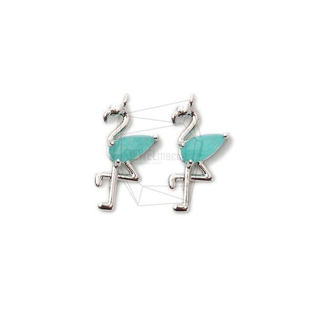 PDT-2338-R/2Pcs- stone flamingo Pendant/ 10mm x 20mm /Rhodium Plated over brass,stone