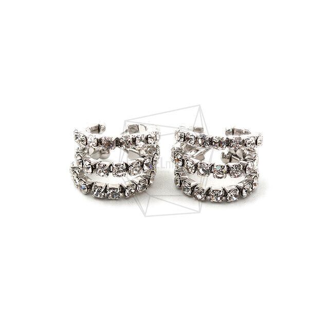 ERG-1426-R/2PCS/Round Earcuffs Earrings/15mm X 18mm/Rhodium Plated Over Brass