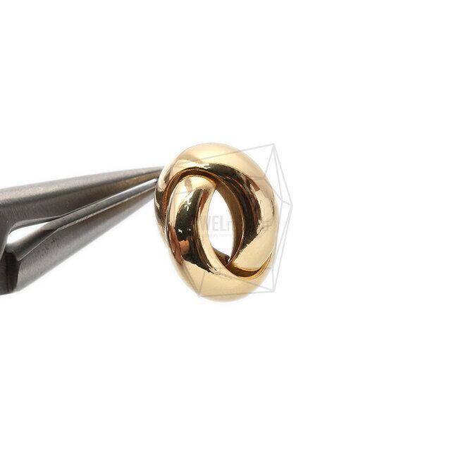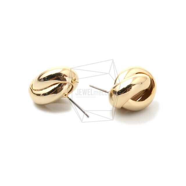 ERG-1408-G/2PCS/Double Ring Earring Post/15mm x 20mm/Gold over Brass/Titanium post