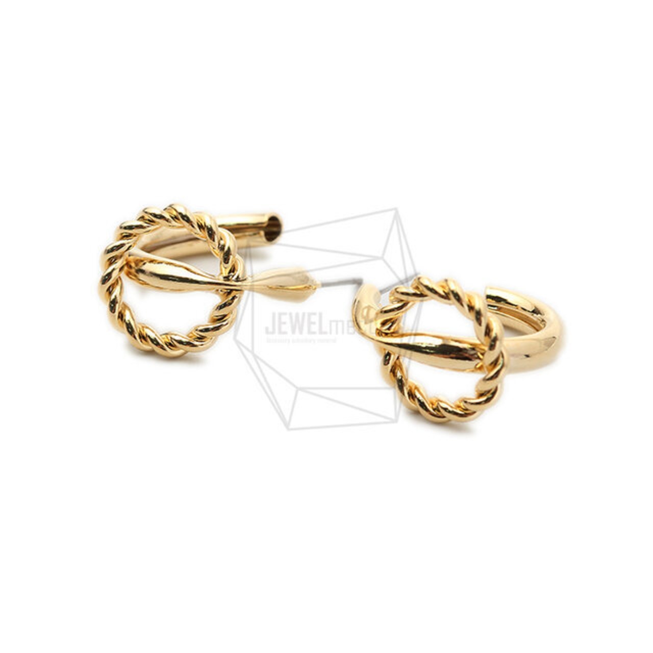ERG-1412-G/2PCS/Double Ring Earring Post/20mm x 20mm/Gold over Brass/Stainless Post