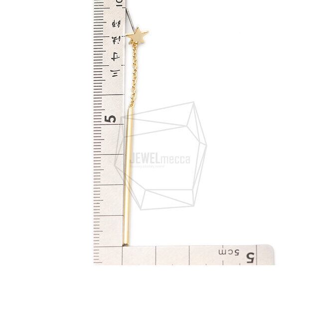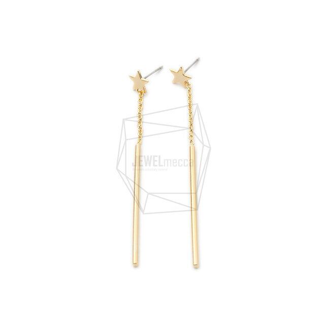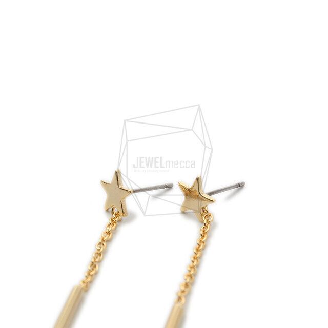 ERG-1415-G/2PCS/Linked star and bar Post Earring/8mm X 75mm/Gold Plated Over Brass,Stainless Post
