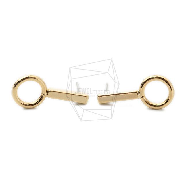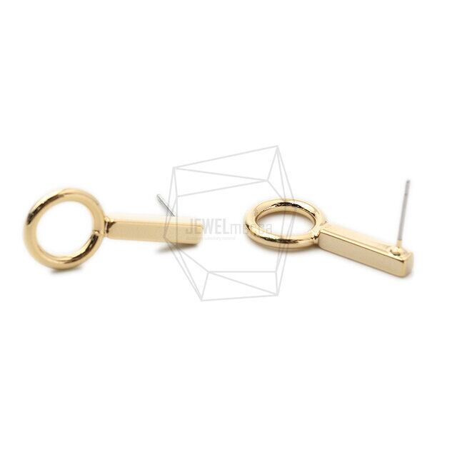 ERG-1419-G/2PCS/round and bar Post Earring/12mm X 22mm/Gold Plated Over Brass,Stainless Post