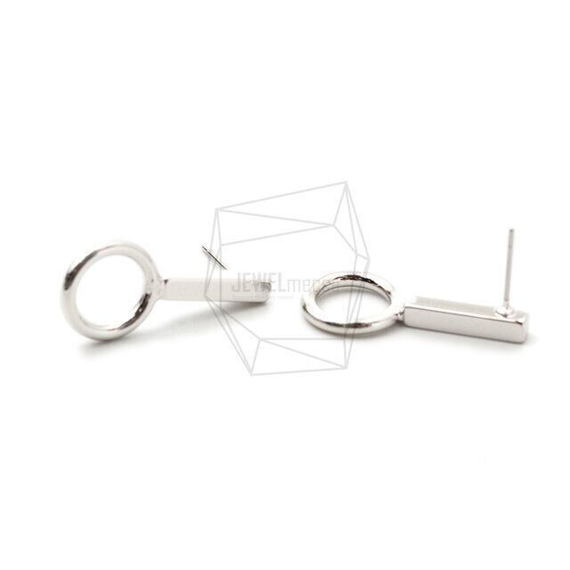 ERG-1419-R/2PCS/round and bar Post Earring/12mm X 22mm/Rhodium Plated Over Brass,Stainless Post