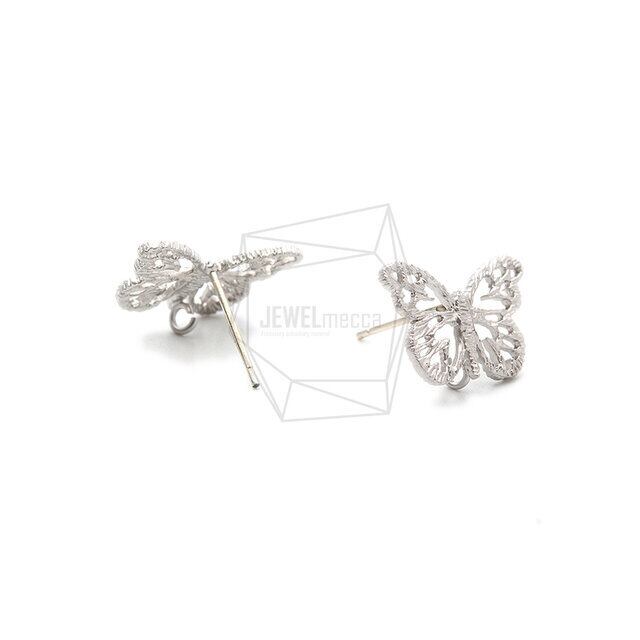 ERG-1317-MR/2PCS/Butterfly Earring Post/10mm x 15mm/Matte Rhodium Plated over Brass,silver post