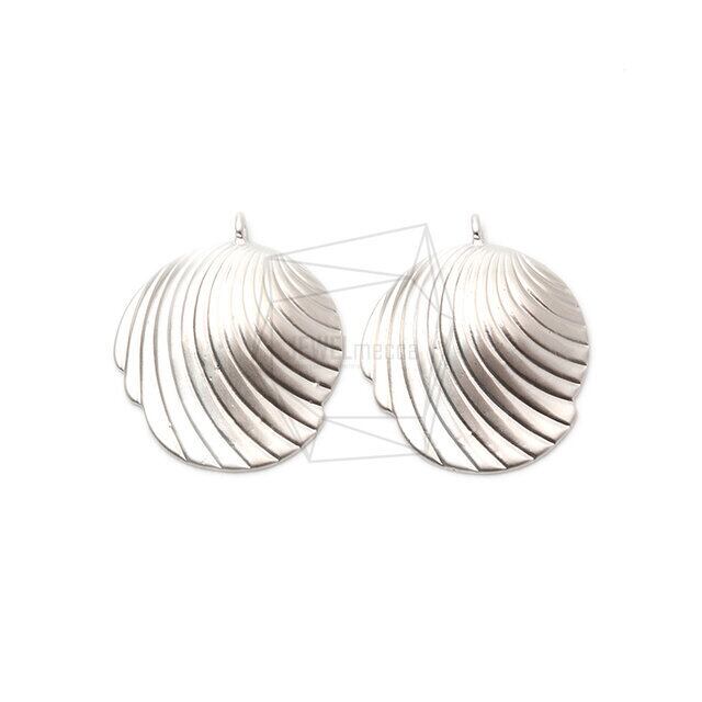PDT-2304-MR/2Pcs-Shell Charms, Clam Shell, Beach Charms/ 20mmx22mm /Matte Rhodium Plated over Brass