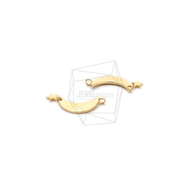PDT-2305-G/2PCS/Moon Linked Star Pendant/8mm X 11mm/Gold Plated Over Brass