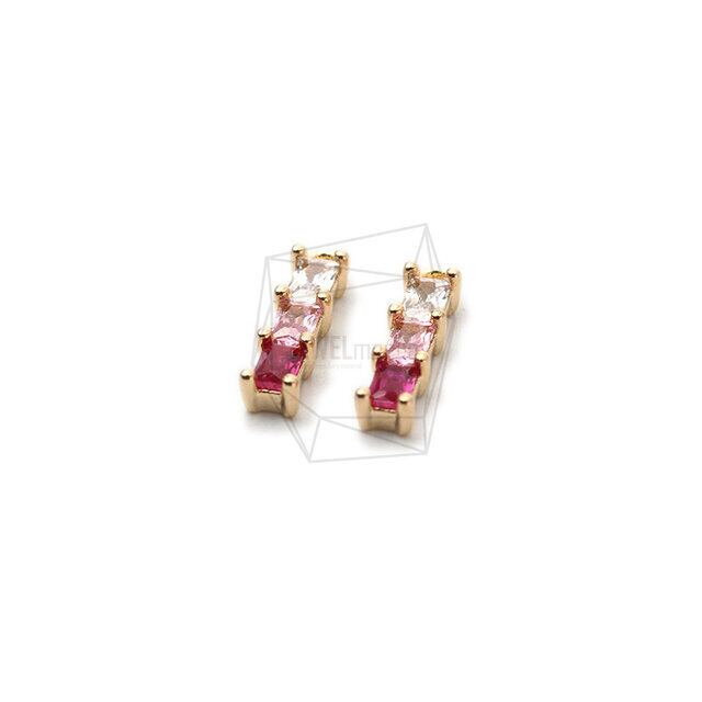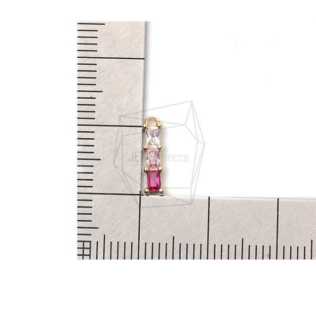 PDT-2309-G/2PCS/Cubic bar Pendant/3mm X 6mm/Gold Plated Over Brass , Cubic Zirconia