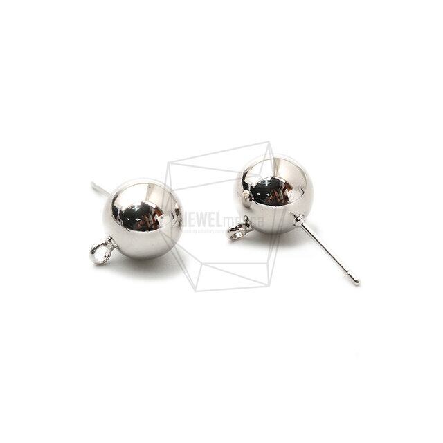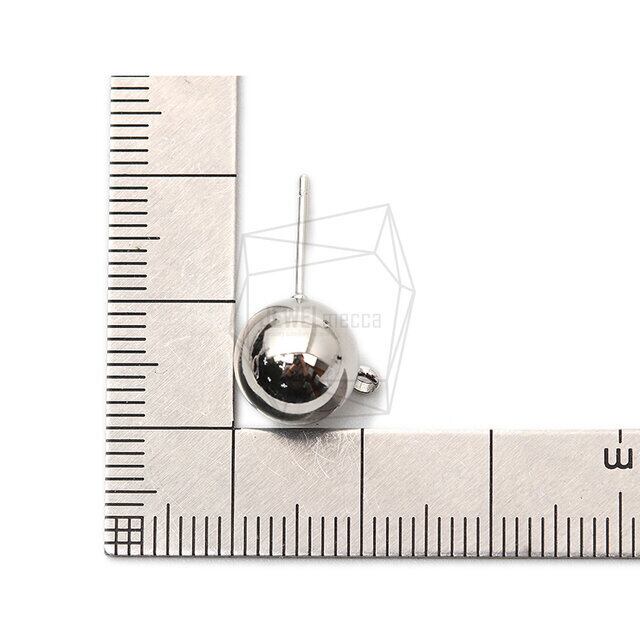 ERG-1398-R/4PCS/Round Ball Post Earring/10mm X 12mm/Rhodium Plated Over Brass