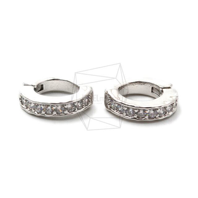 ERG-1432-R/2PCS/Cubic round Earcuffs Earrings/15mm X 15mm/Rhodium Plated Over Brass,CZ